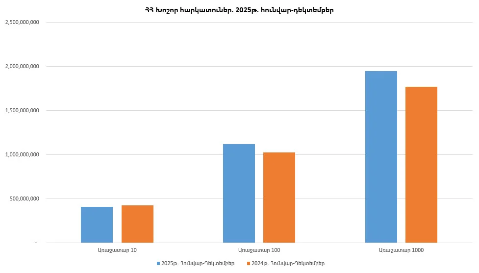 2025-ին խոշոր հարկատուների վճարումները աճել են․ առաջին 1,000 ընկերությունները բյուջե են մուծել շուրջ 1.95 տրլն դրամ